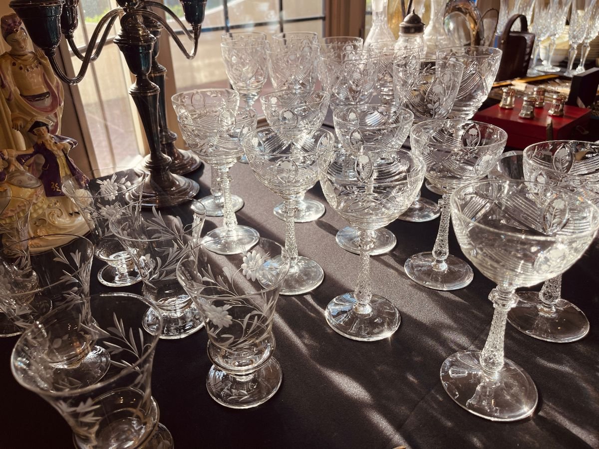 Also featured are pressed glass, ruby glass, crystal, and a large set of Limoges porcelain.