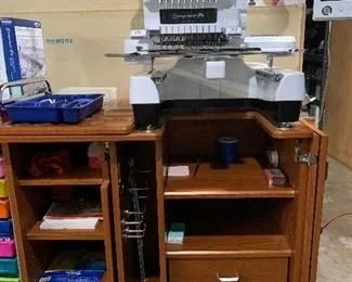 HOUSEHOLD: Brother Entrepreneur Pro PR1000e Ten Needle Machine Purchased at Barnes Sewing Center Includes Many Accessories, Ekornes Leather Chair, Crocks, Recliner, 2 Curio Cupboards, China Hutch, Dining Table With 6 Chairs, Sofa, Upholstered Chairs, Coffee Table, Side Tables, Beer Steins, Lamps, Tea Cart, Victorian Settee and Chairs, 5 Piece Twin Bed Set, Jewelry, Jewelry Chest, Roll Top Desk, Photography Equipment, Exercise Equipment, Bikes, Kitchen Items, Men’s and Woman’s Clothes, And So Much More Please Stop By!